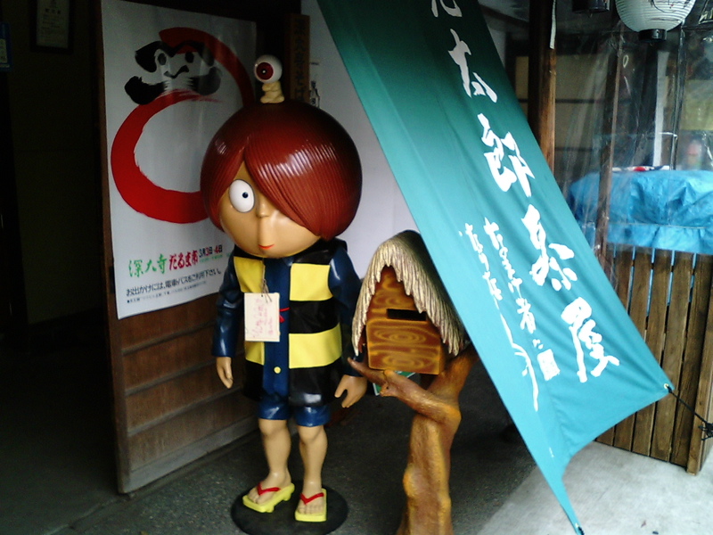 鬼太郎や目玉おやじといった、「ゲゲゲの鬼太郎」の妖怪が店内や外にもそこかしこにいます。
