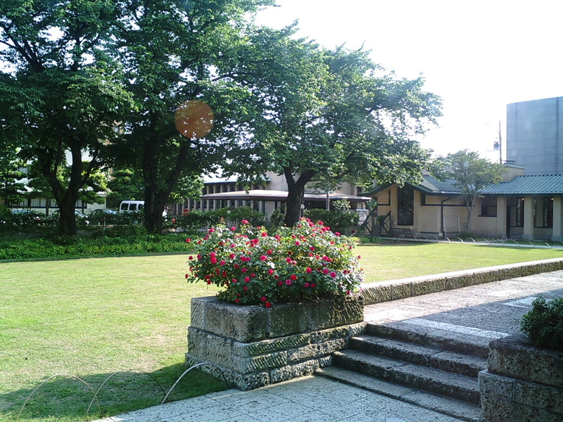先月初めに見事な花を咲かせていた桜は、今では青々とした葉桜になり、変わりにバラがきれいに咲いていました。