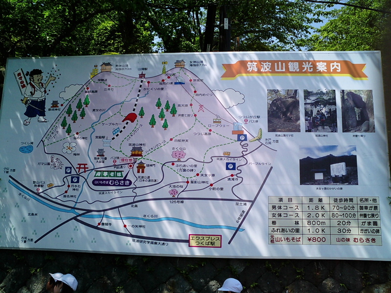 筑波山神社の近くに、観光案内の看板(右の写真)が出ていたので、バイクを停めて見ていました。