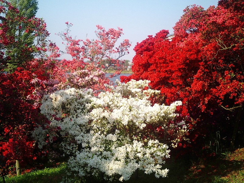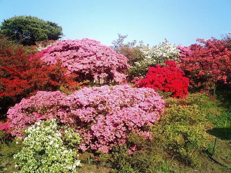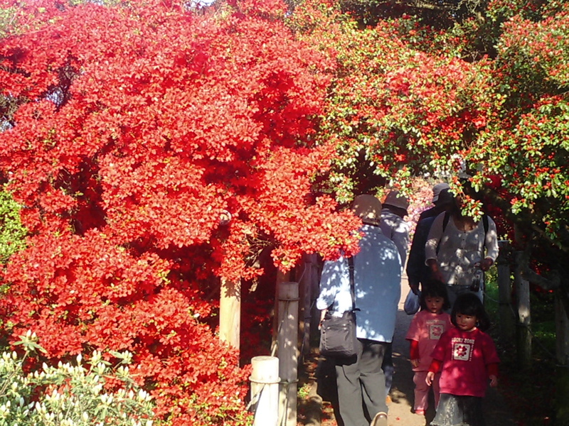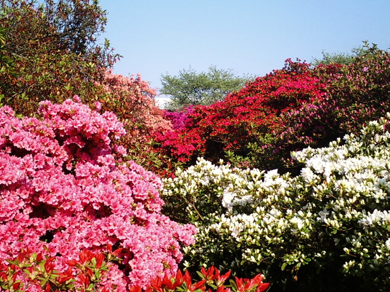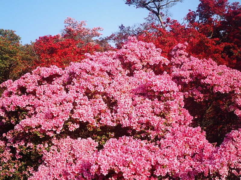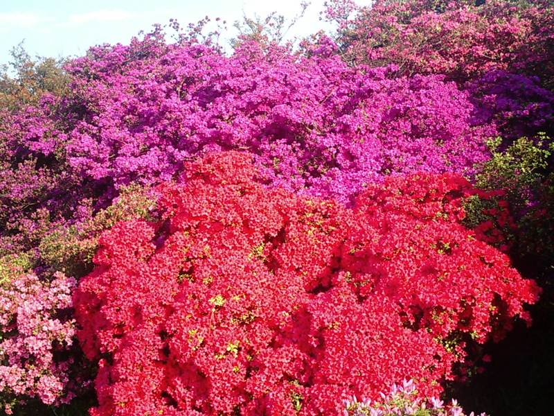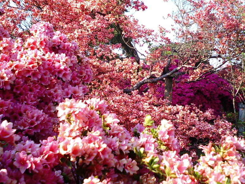 道端で見掛ける低木の姿とうって変わって巨大なツツジの木が色鮮やかな花を満開に咲かせていて迫力満点!