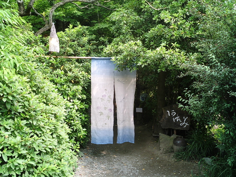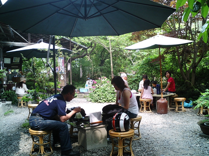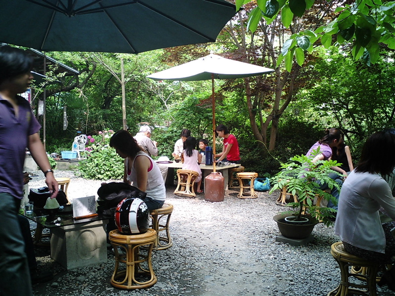 個人宅の庭先のような場所で、緑に囲まれていて真夏のような暑さを忘れてしまうぐらい心地良い空間になっています。