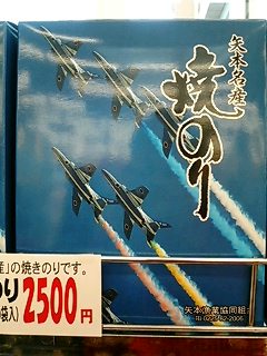 ブルーインパルスの焼きのり 宮城県の矢本というところに来ています。 ここはブルーインパルスのふるさと 航空自衛隊松島基地 があるので、焼きのりにもブルーインパルスが登場してます(^-^) 「モブログ」カテゴリの最新記事 < 前の記事次の記事 > コメント コメントフォーム 名前 コメント 評価する リセット リセット 顔 星 投稿する 情報を記憶