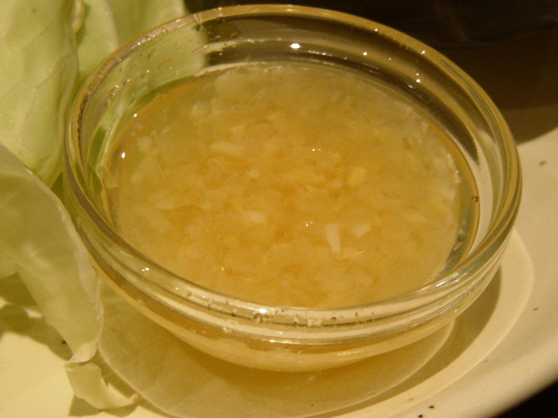 キャベツの味を損なわずスッキリした味。ただし、タレが液体状態なのでうまく食べないと、テーブルの上にポタポタとたらしてしまうのが難点。
