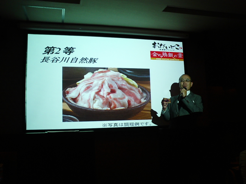 「おだいどこ」の料理が食べ終わった後に、まずは「金の鶏銀の釜」のプレゼン。