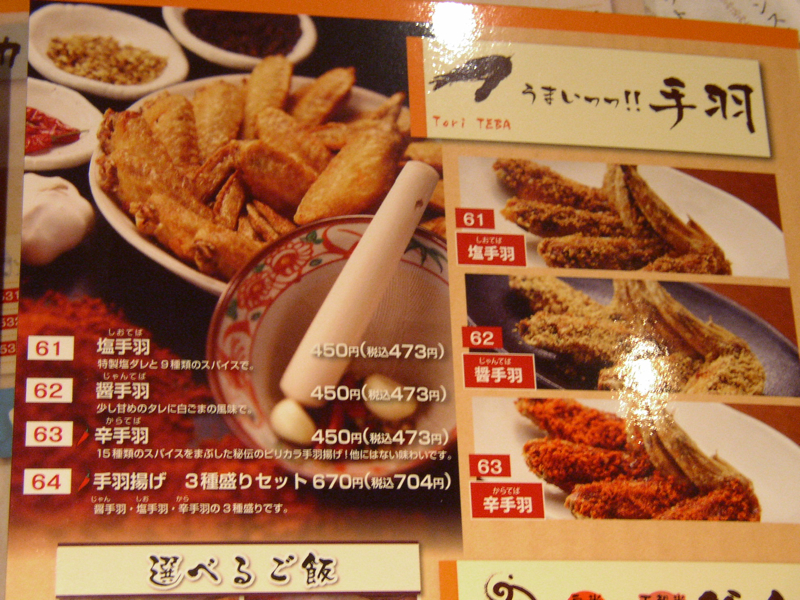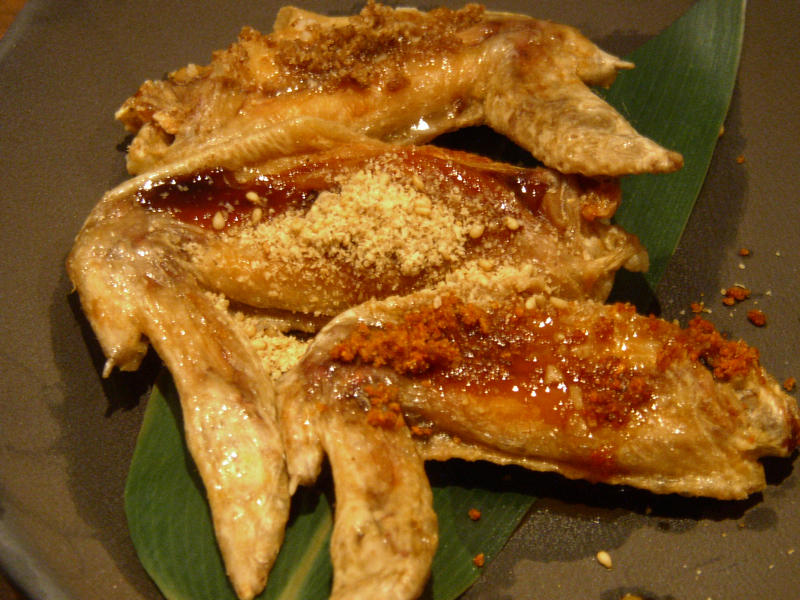 今まで食べてきた料理は、僕と奥様で分けて食べてきたんですが、1つの手羽先を2人で食べるわけにもいかず、僕が「醤手羽」「塩手羽」、奥様が「辛手羽」を食べました。