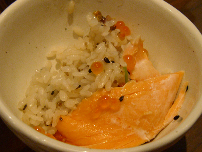 まずは、「イクラとサーモンの贅沢親子釜飯(五穀米)」から。