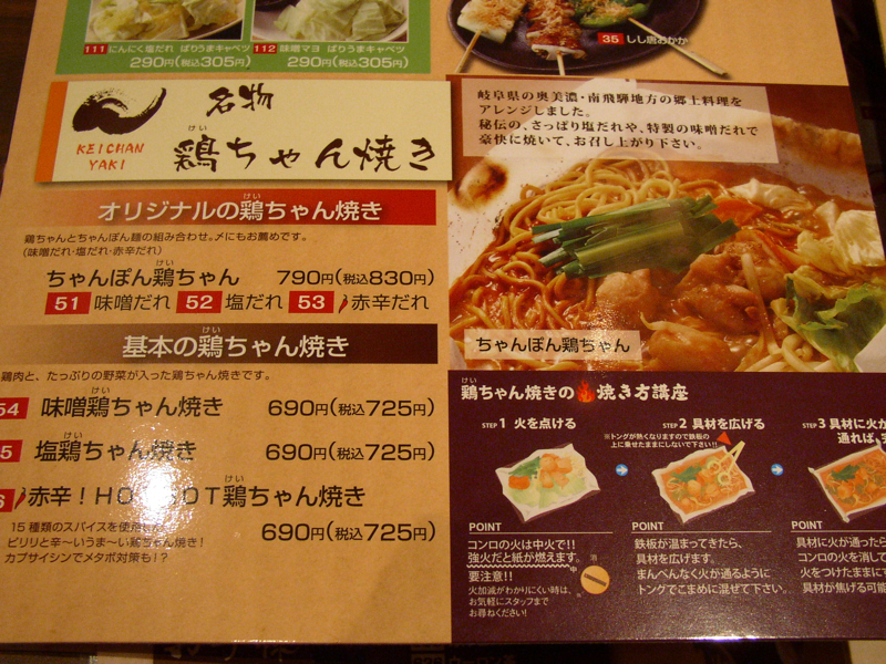 「串焼」「釜飯」「手羽揚げ」「鶏ちゃん焼き(けいちゃんやき)」がメニューのメインだそうです。