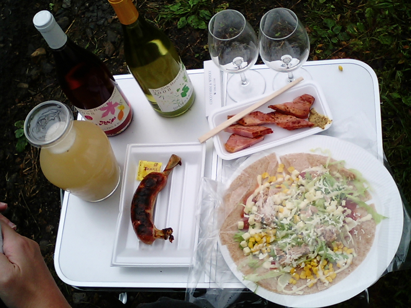もっともキャンプで多少の雨には慣れているので、ワイングラスや料理が雨ざらしになることあまり気にしなかったんですが、はっきりしない天候になかなかテンションが上がらず。