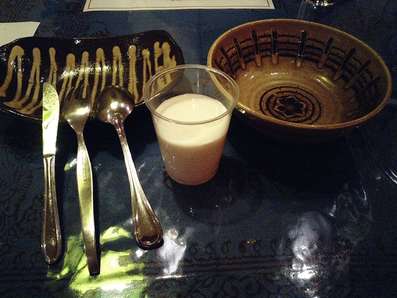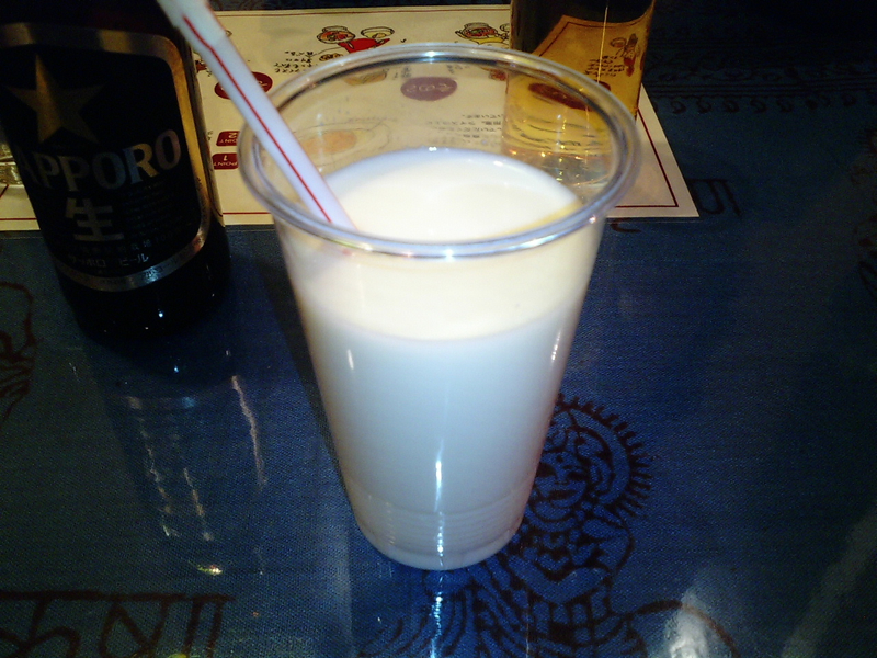 スープカレーに合わせて飲み物は牛乳をチョイス。メニュ−には牛乳の量が“シングル”と“ダブル”があって、どっちがいいか店員さんに聞くと、