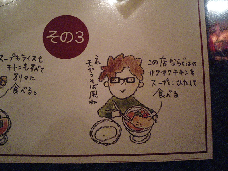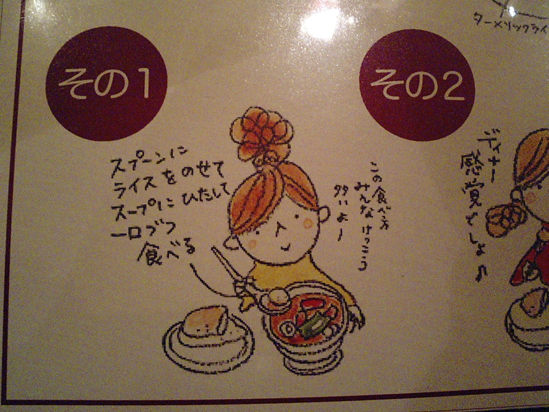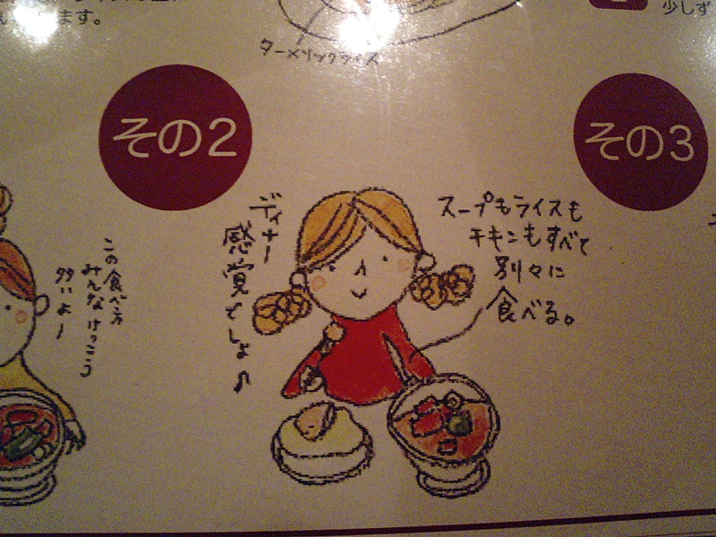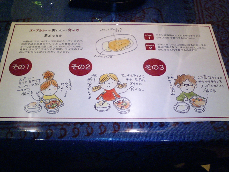 注文した後、テーブルに書かれたスープカレーの食べ方を見ると、