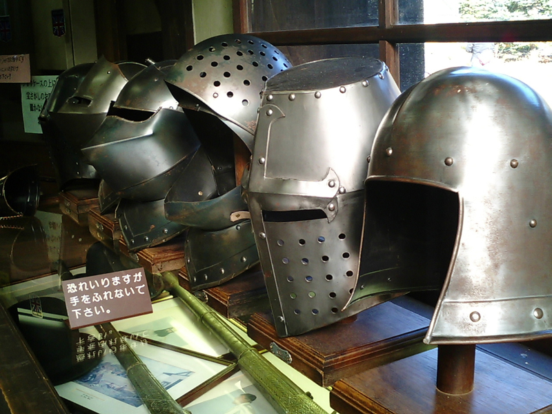 なぜか中世ヨーロッパ風の兜が展示されたりしてます。