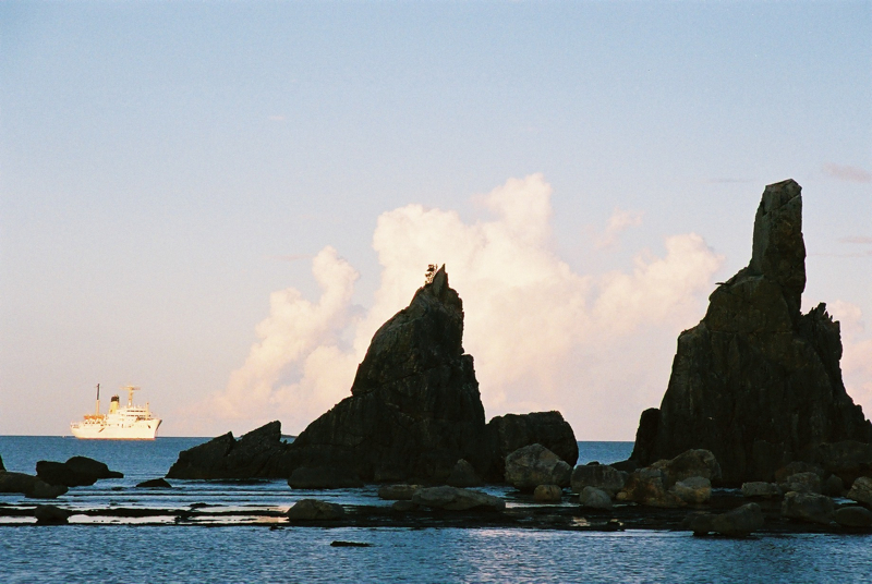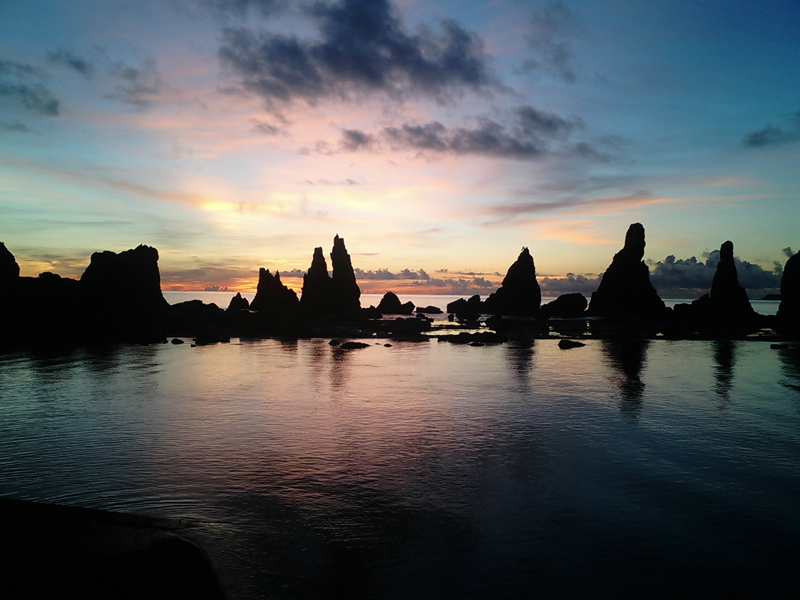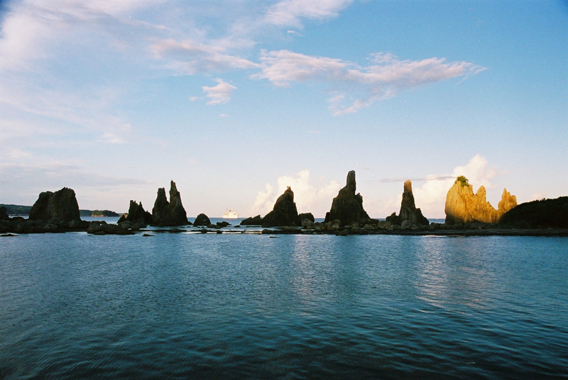 紀伊半島をツーリングしていて、まず橋杭岩に立ち寄ったのが夕暮れ時。