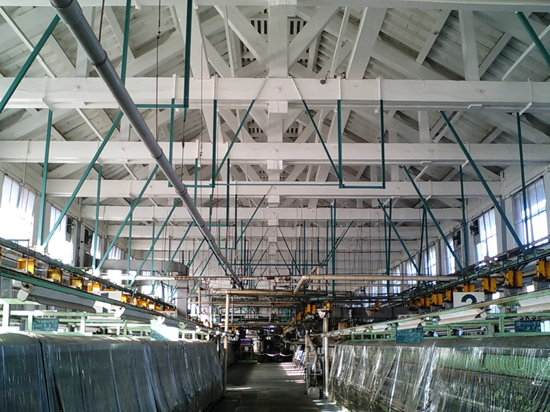 通路を挟んで両サイドに並んだ繰糸機械が、工場であったことは理解できるものの、両サイドの機械のその外側にある窓から入ってくる光が強く、室内を明るくしてくれているので、