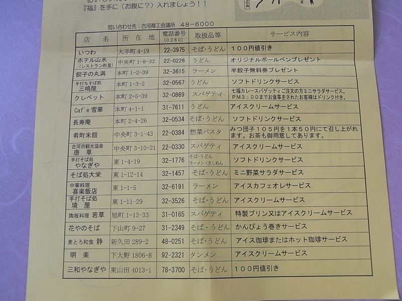 もらったカレーマップと古河の桃まつりにあわせて行われているキャンペーンのチラシなぞ見ながら奥様と