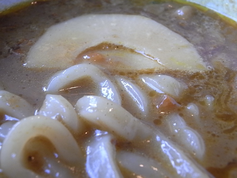 透き通るうどんは、とってもしなやかな食感で、カレー&つゆの美味しいコンビにいい感じで絡んで最高に美味しいカレーうどんに仕上がっています。