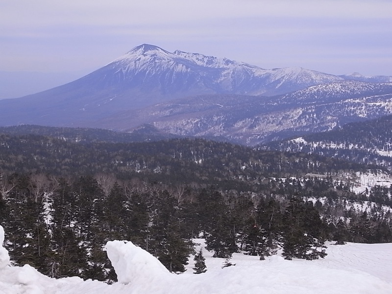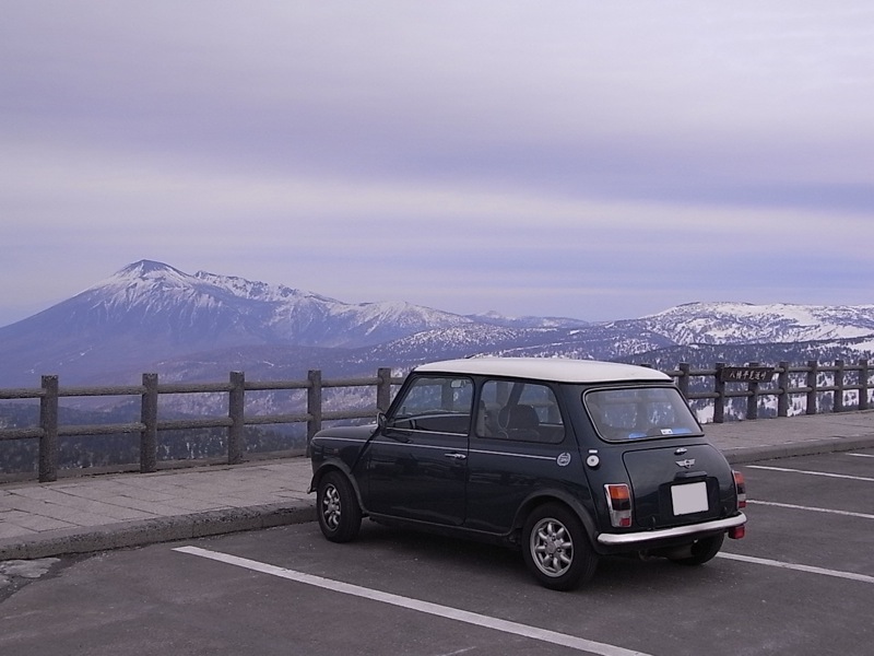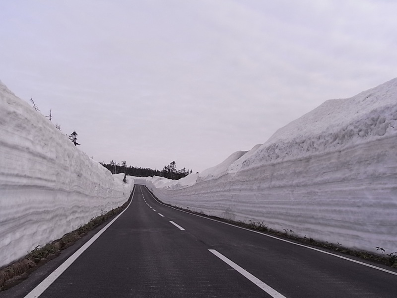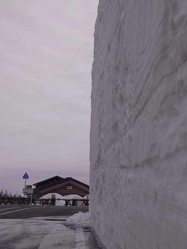 ざっと2、3mぐらいって高さの雪の回廊が続き、しかも雪の壁が若干汚れていて、ちょっと気落ちしつつクルマを走らせ、山頂近くにある八幡平展望駐車場へ。