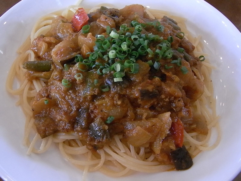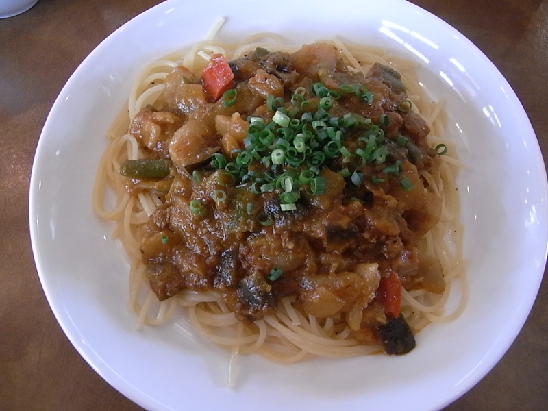 色はややカレーっぽいものの、カレーよりパスタより野菜の存在感が幅を利かせてます。