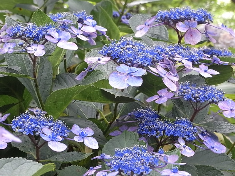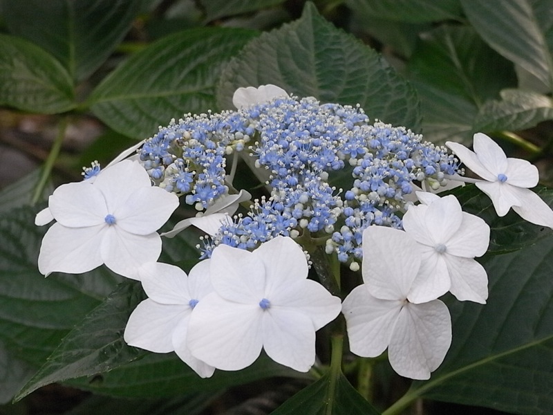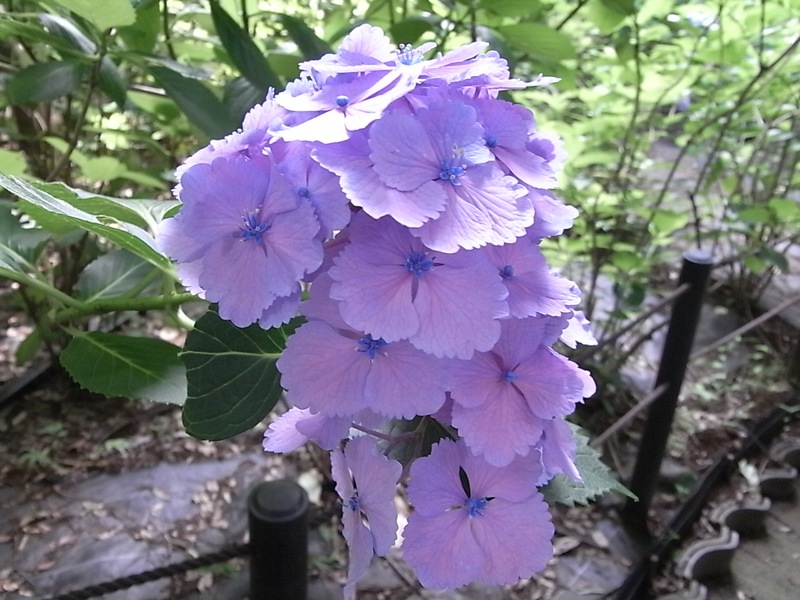 ちょっと珍しい額紫陽花(がくあじさい)も咲いてます。