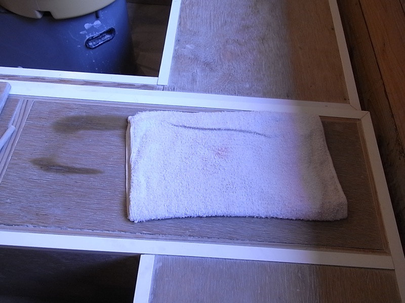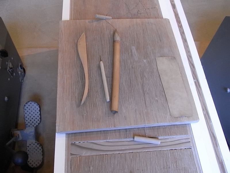 陶芸道具と手を拭くタオルが置かれています。