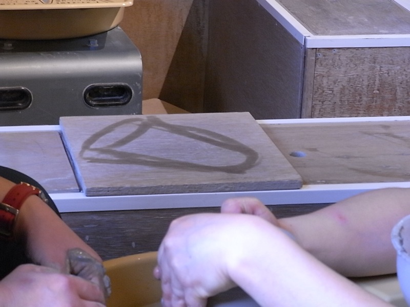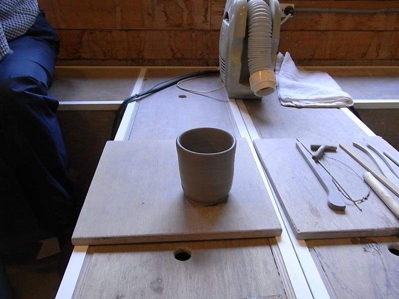 陶芸って回っている粘土を手先だけの形作っていくだけの作業かと思っていたら、特に最初の方ではかなり力を入れて形をつくっていきます。