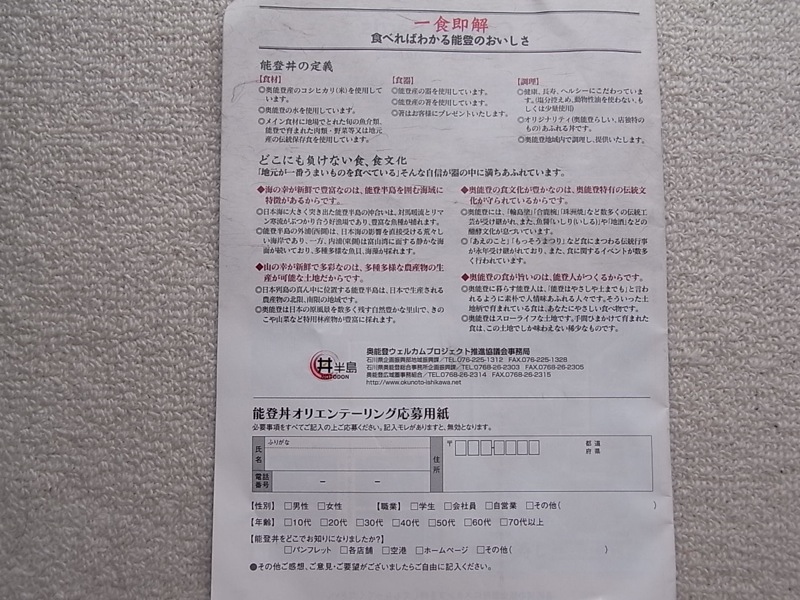 「だったら、この冊子『能登丼』食べた人に配った方がいいんじゃない?」