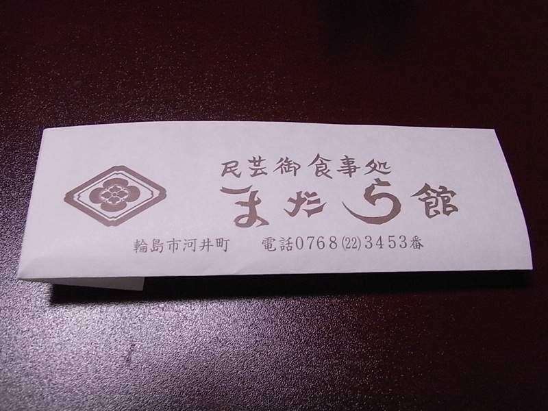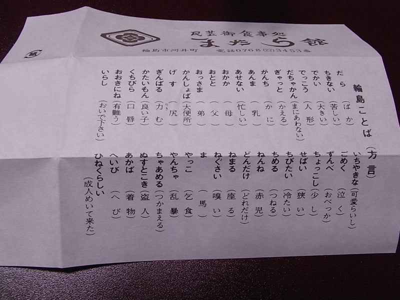 普段だったら待っている間に気づきそうな、箸袋に書かれた輪島の方言を食後に発見。
