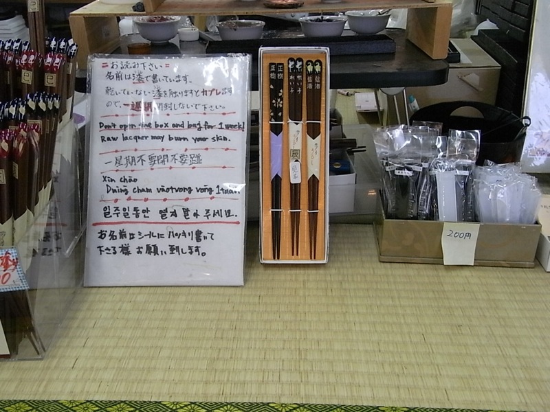 店内は輪島塗りのお箸がたっくさん陳列されてます。