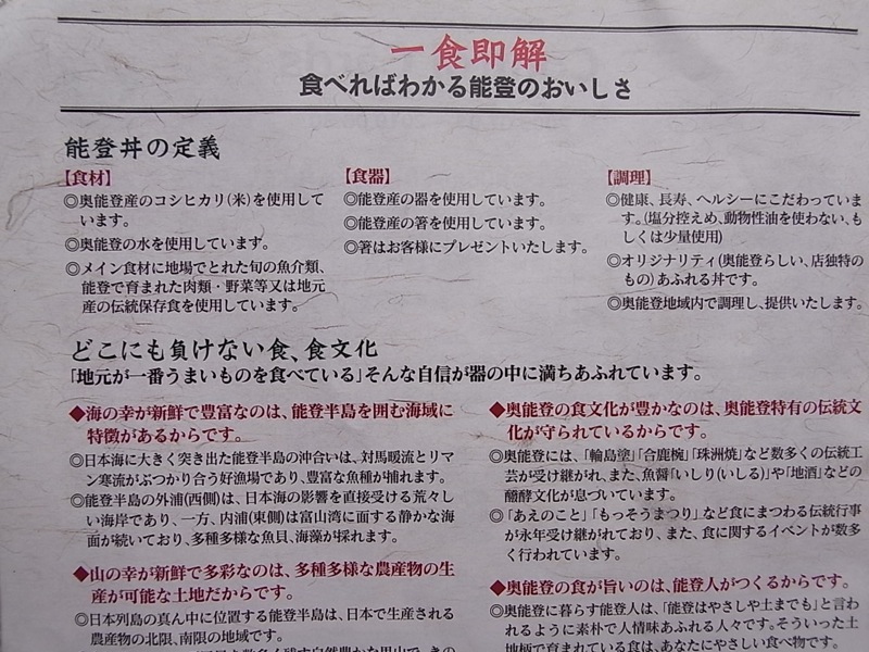 で、『能登丼認定書』とは能登の食材を使った丼で、参加店が共通して名付けたのが『能登丼』なんだそうです。