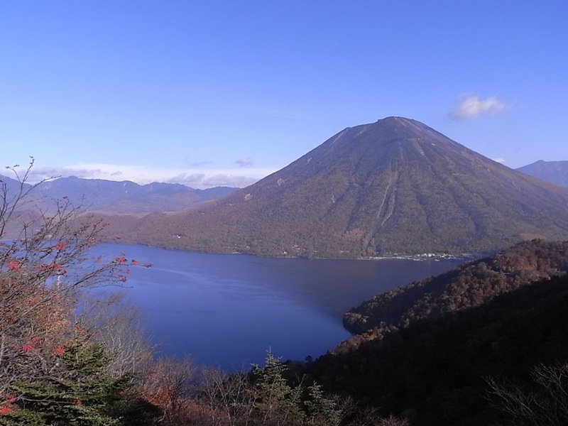 半月山展望台から見える男体山は、すそ野まで見えて、“山”らしい姿で見えます。
