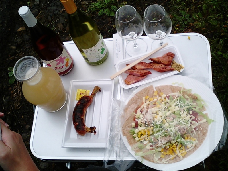 会場はぶどう畑なので、レジャーシートや簡易テーブルは必須。