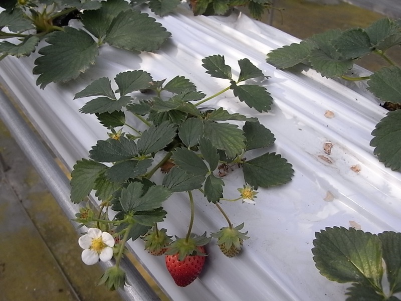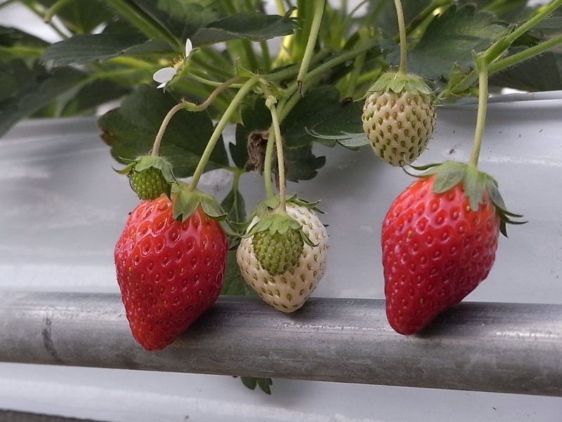 いちごが架台に載っている