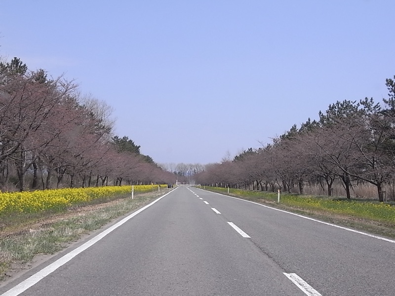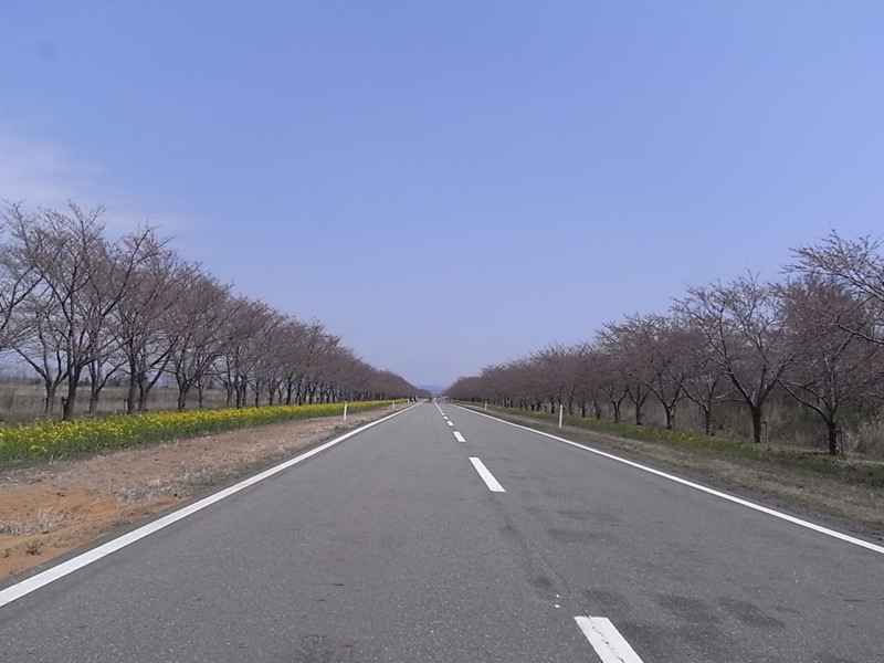 桜舞い散る中をミニクーパーで颯爽と走る!という夢はついえたものの、ひたすら真っすぐな道を走るのはなかなか気持ちいい(^o^)