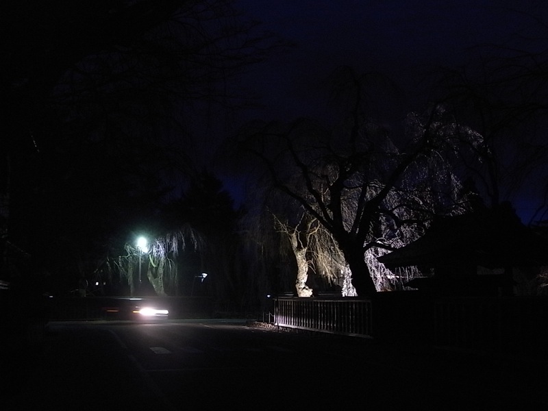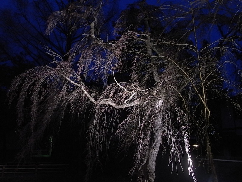 暗くなるにつれてライトアップされた枝垂桜がそれなりの雰囲気をみせてくれるようになり、