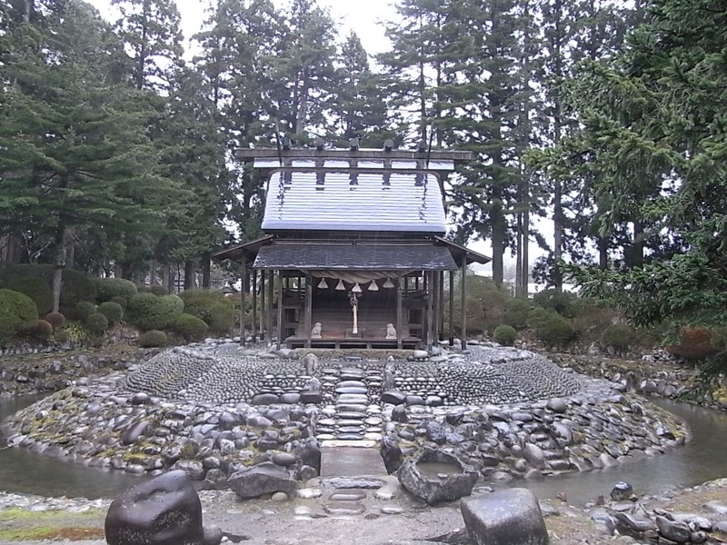 神社は、方位や自然の地形に意味合いを持たせた位置に建立されますが、この神社は人工的に作られた堀のに囲まれた高台の中心に位置し、しかも非自然的なシンメトリーの地形構成。