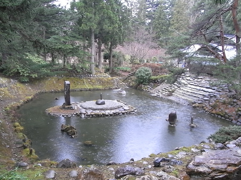 おとなりにある池には、謎の石が不自然に立ってます。おちんちん?