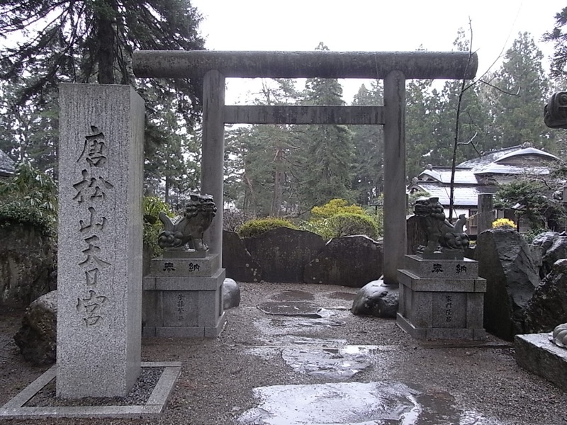 その後、参道の戻る途中に『唐松山天日宮』と書かれた石碑と鳥居が目に入り、