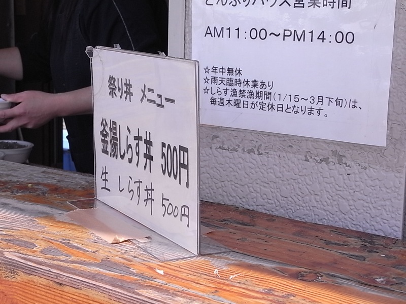 そこで奥様に並んでもらいつつ、生しらす丼を買いにどんぶりハウスへ。