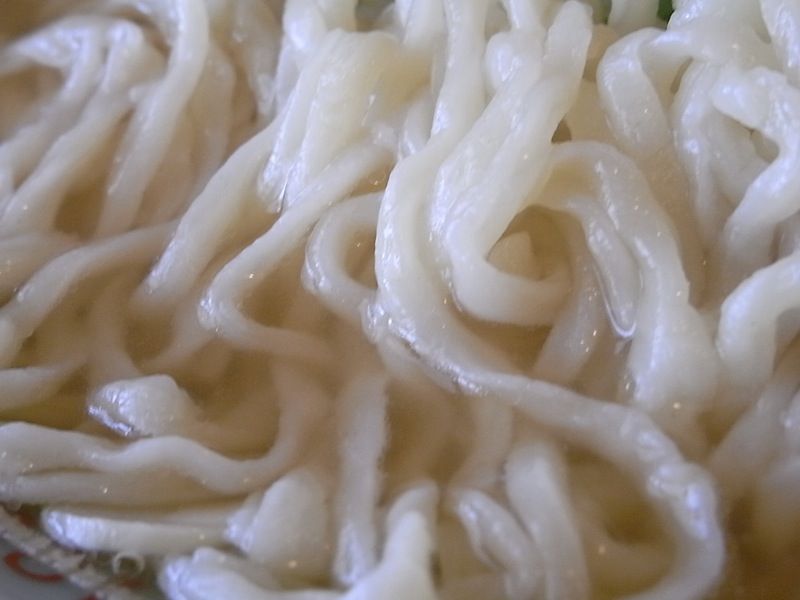 今のうどんみたいな麺じゃなくて縮れ麺で