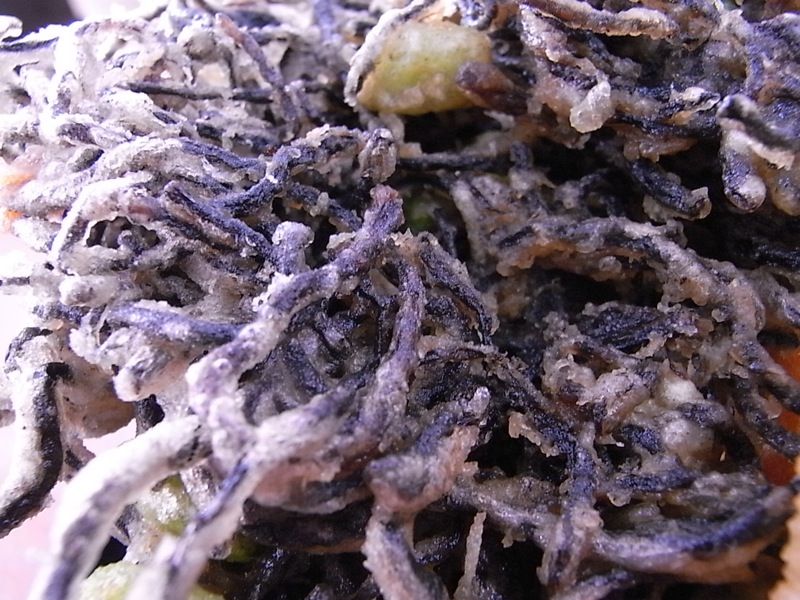 煮物のひじきは柔らかいけど、天ぷらのひじきは結構硬くて“切る”のではなく、ひじきを“ほぐし”ながら食べてみると、