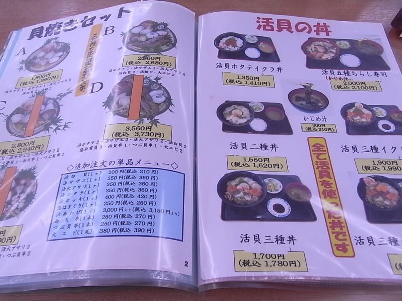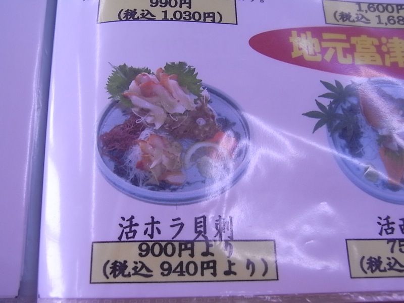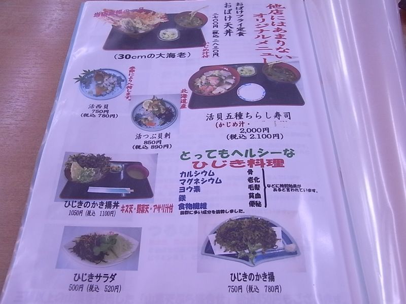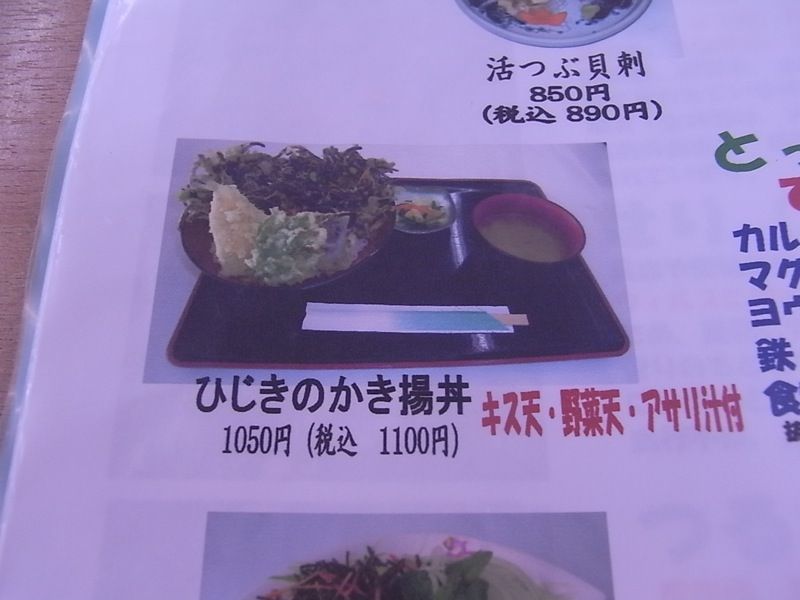 活ホラ貝刺940円、ひじきのかき揚げ丼1,050円 ちょっと高い
