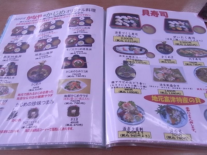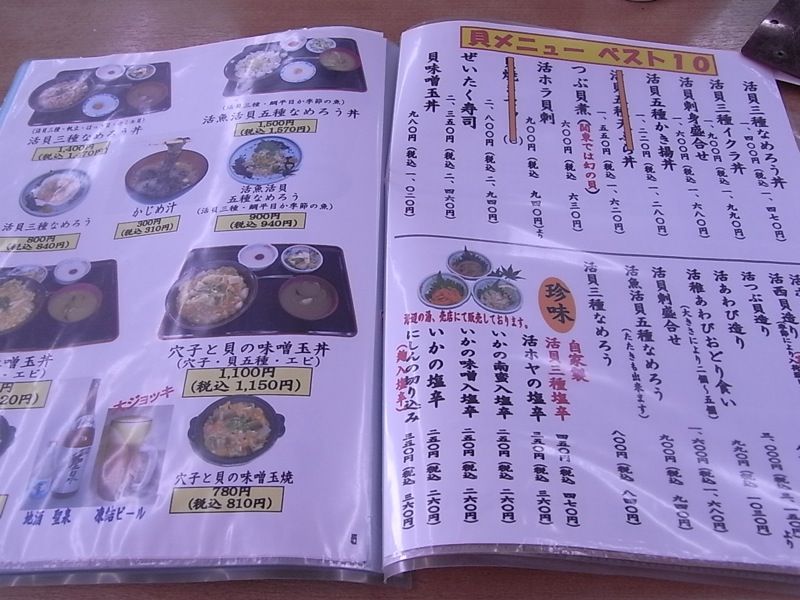 活ホラ貝刺940円、ひじきのかき揚げ丼1,050円 ちょっと高い食べた場所:漁師料理かなや
