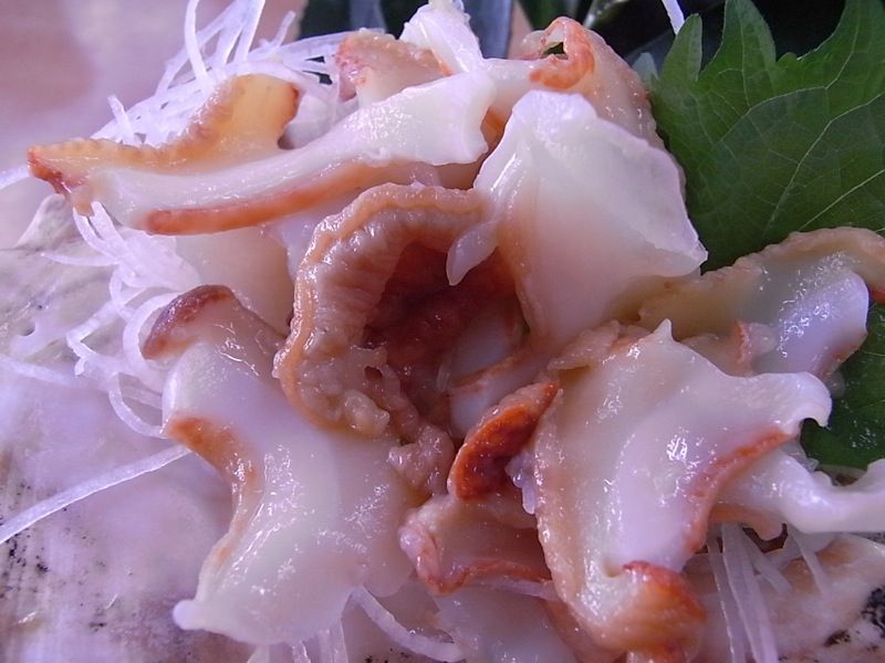 身は、周りは赤く縮れていて赤貝ぽく、中は白くアワビぽい感じ。