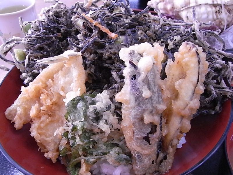 ホラ貝とひじきの天ぷら、味的には「ちょっと...」でしたが、