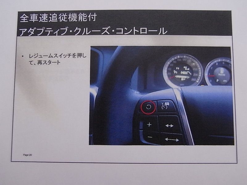 ハンドル左側には、これから体験走行する、“全車速追従機能付きアダプティブ・クルーズ・コントロール”の操作ボタンがついています。