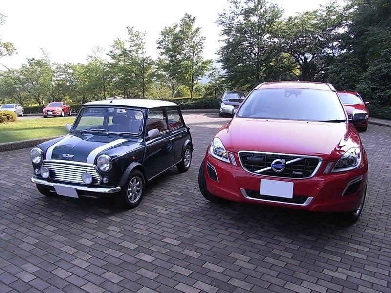 右は試乗車ボルボXC60、左は愛車ミニクーパー。