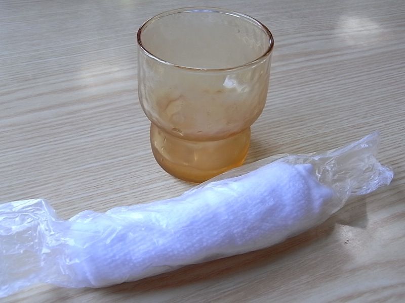おしぼりとお冷や。