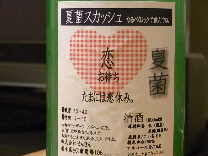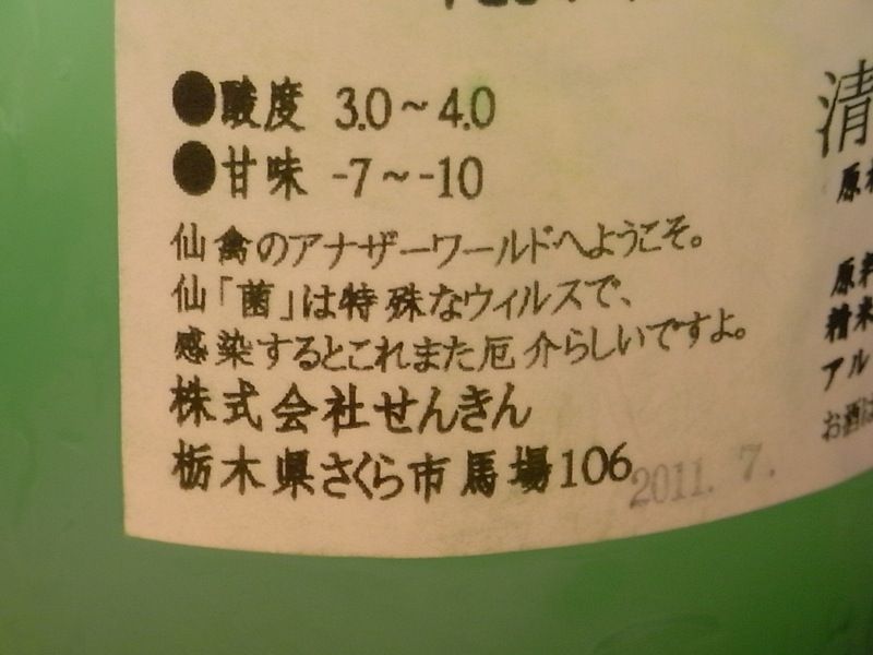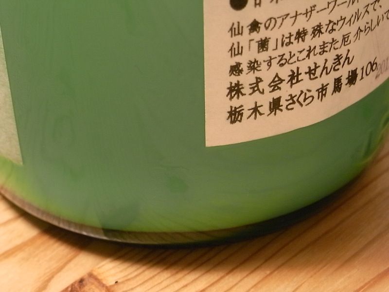 ビンの表には、“仙禽”と書かれたラベルが貼られ、