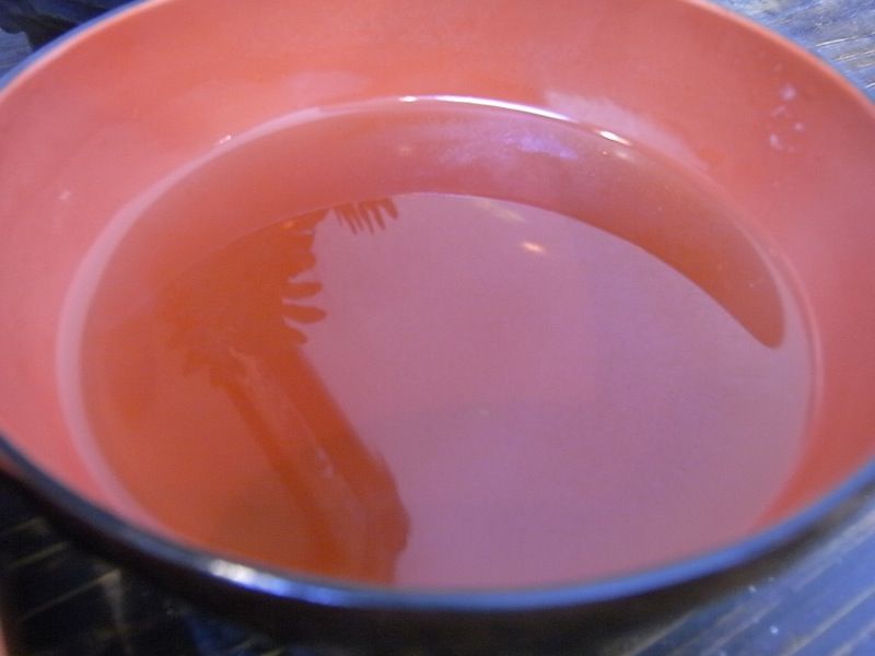 数個食べたところでダシに紅生姜を投入!