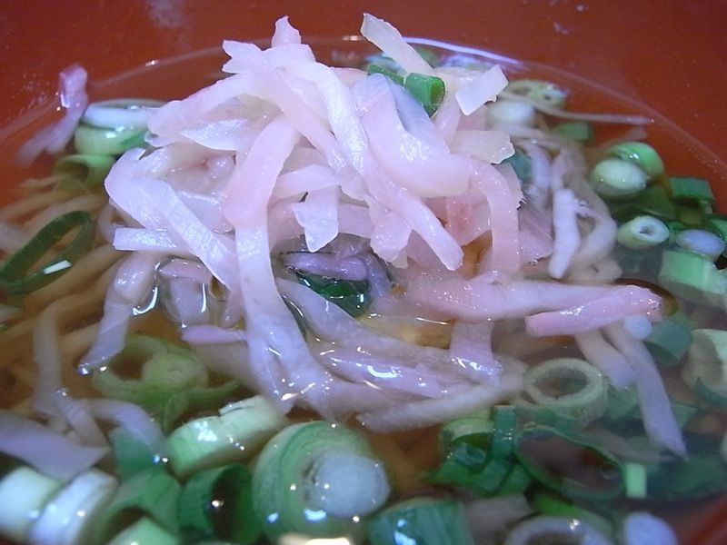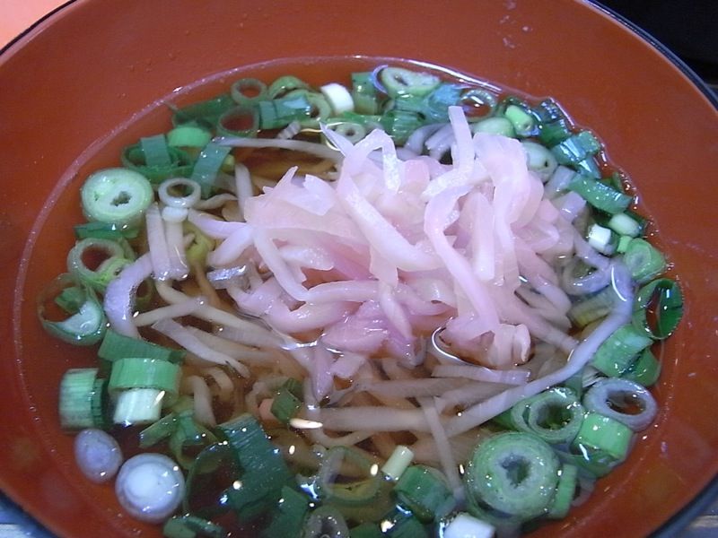 ダシ、薬味のネギと紅生姜も出てきて、