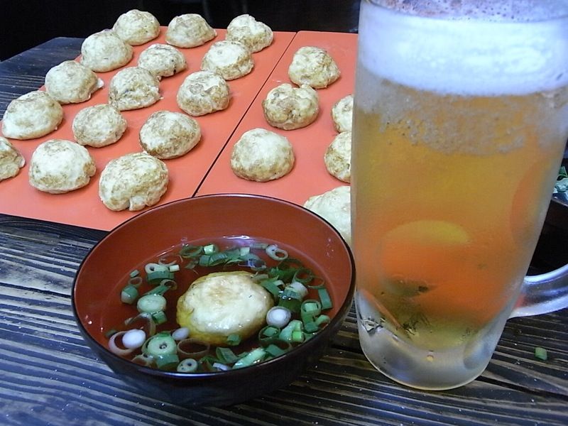 奥様ともども15個の明石焼きと生ビールを注文!